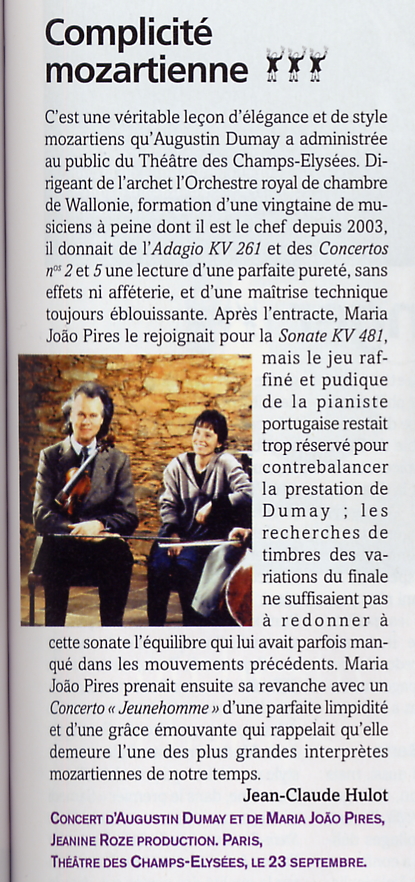 Diapason 2006, Complicité mozartienne Publié 4 septembre 2013 à 415 &fois; 882 dans Diapason 2006, Complicité mozartienne