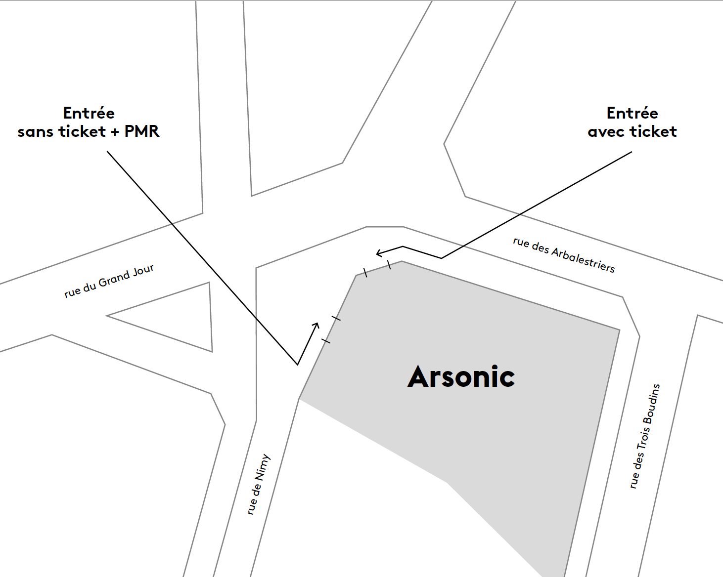 - L’entrée avec tickets est séparée de l’entrée sans tickets