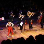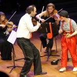 Les coups de cœur du clown pour des « instruments surprises » (cuillère à café, ukulélé, violon, klaxon, et d’autres instruments farfelus) viendront joyeusement compléter le quatuor en une fantaisie cacophonique, le métamorphosant en quintette inédit. Bach, Beethoven, Schubert ou encore Dvorak guideront le clown dans sa quête imaginaire de la musique, encadrant ses maladresses dans une alchimie imprévisible.