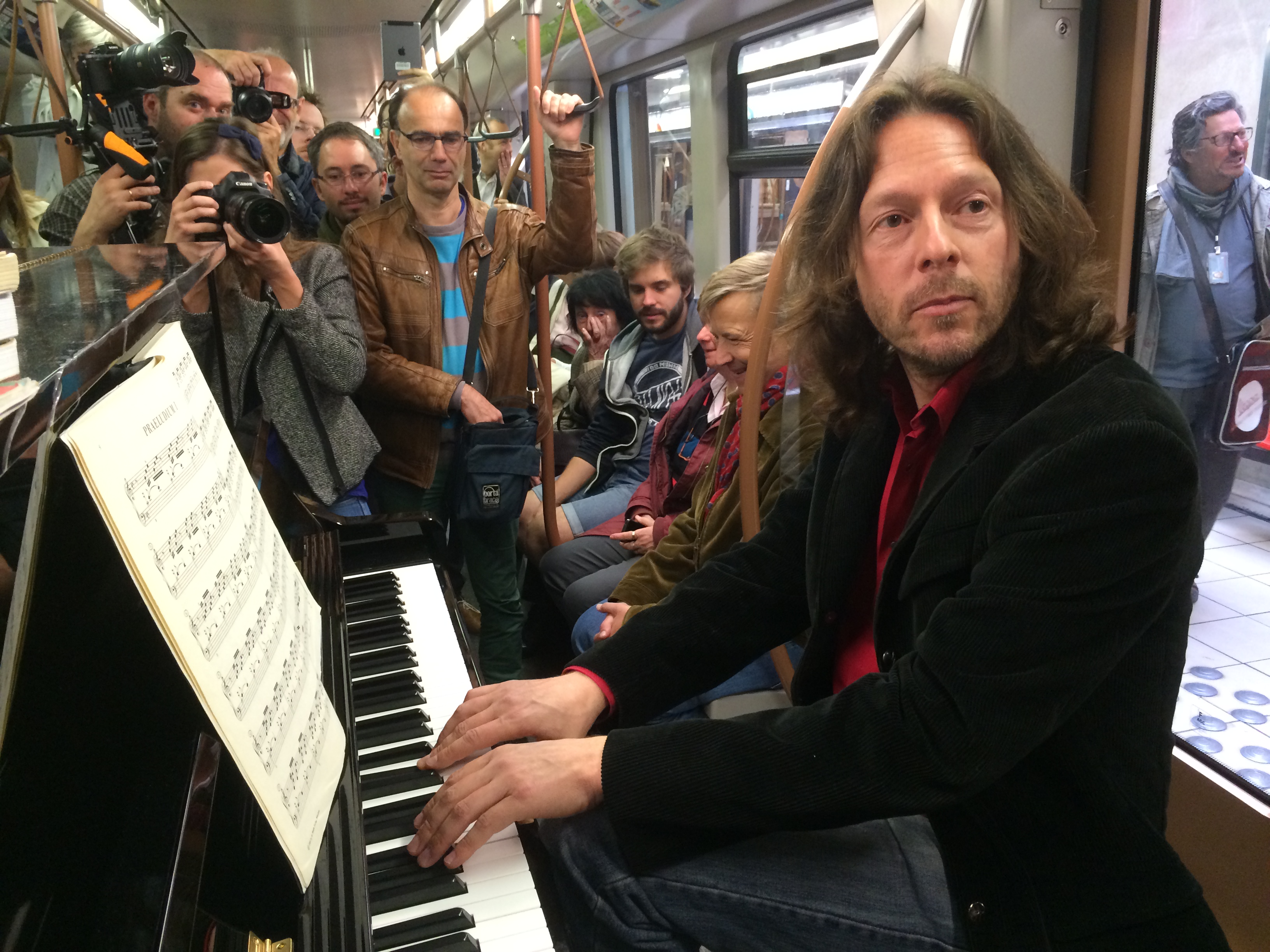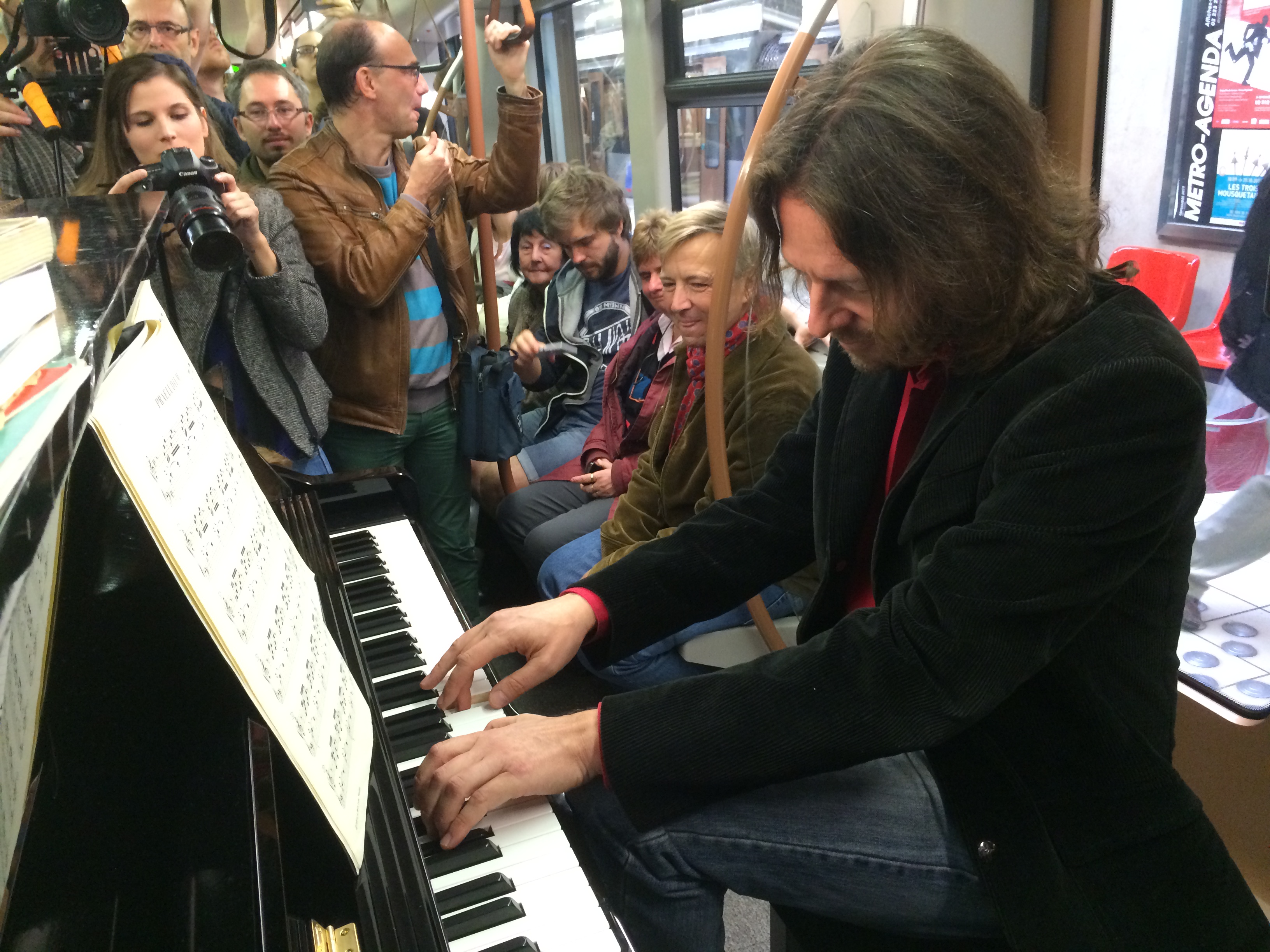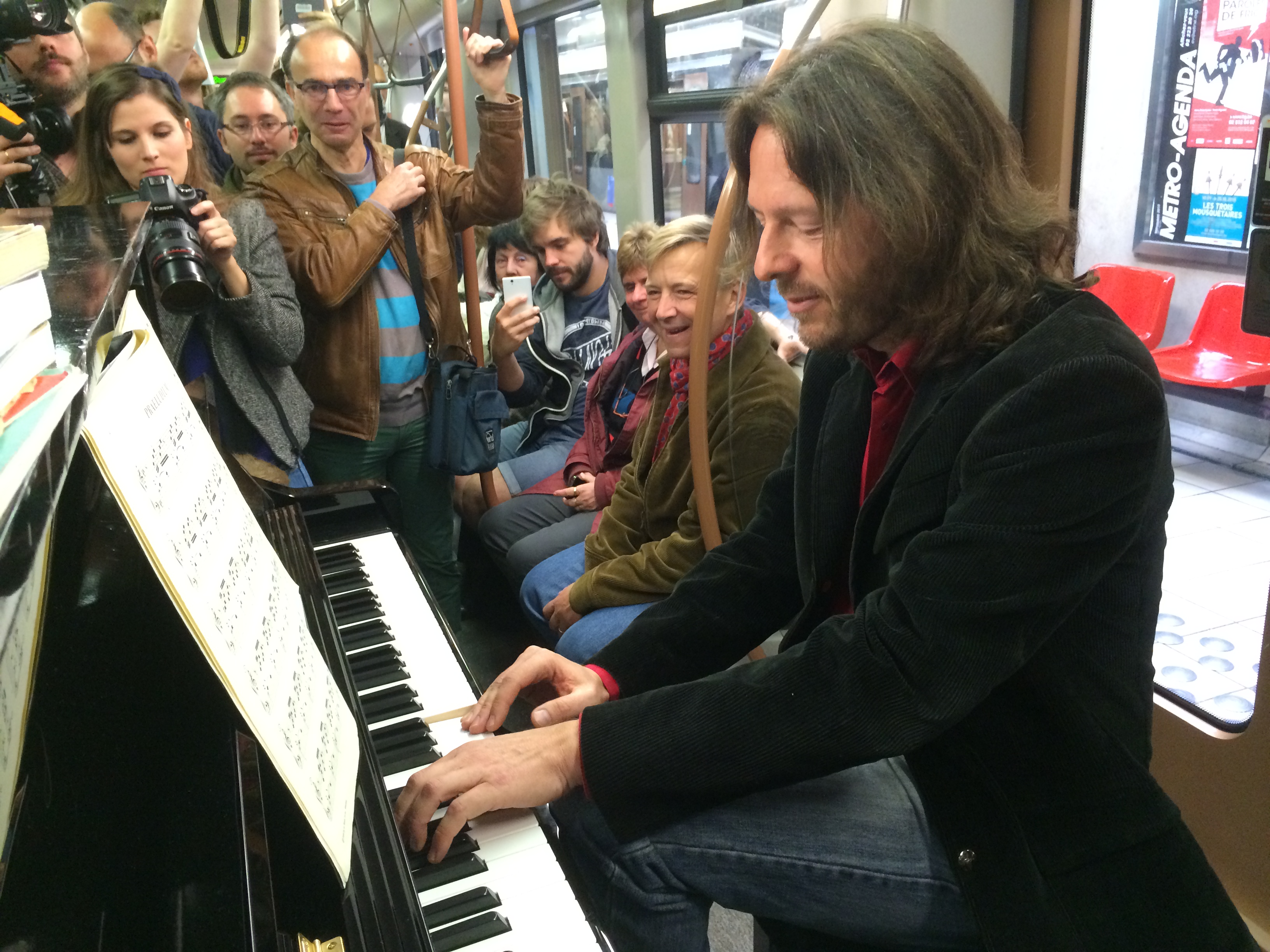 Pour fêter les 60 ans de la STIB, le samedi 12 septembre, le pianiste Frank Braley a donné une ambiance toute particulière au métro de la ligne 1 le temps d’un trajet entre Stockel et Gare de l’Ouest.
