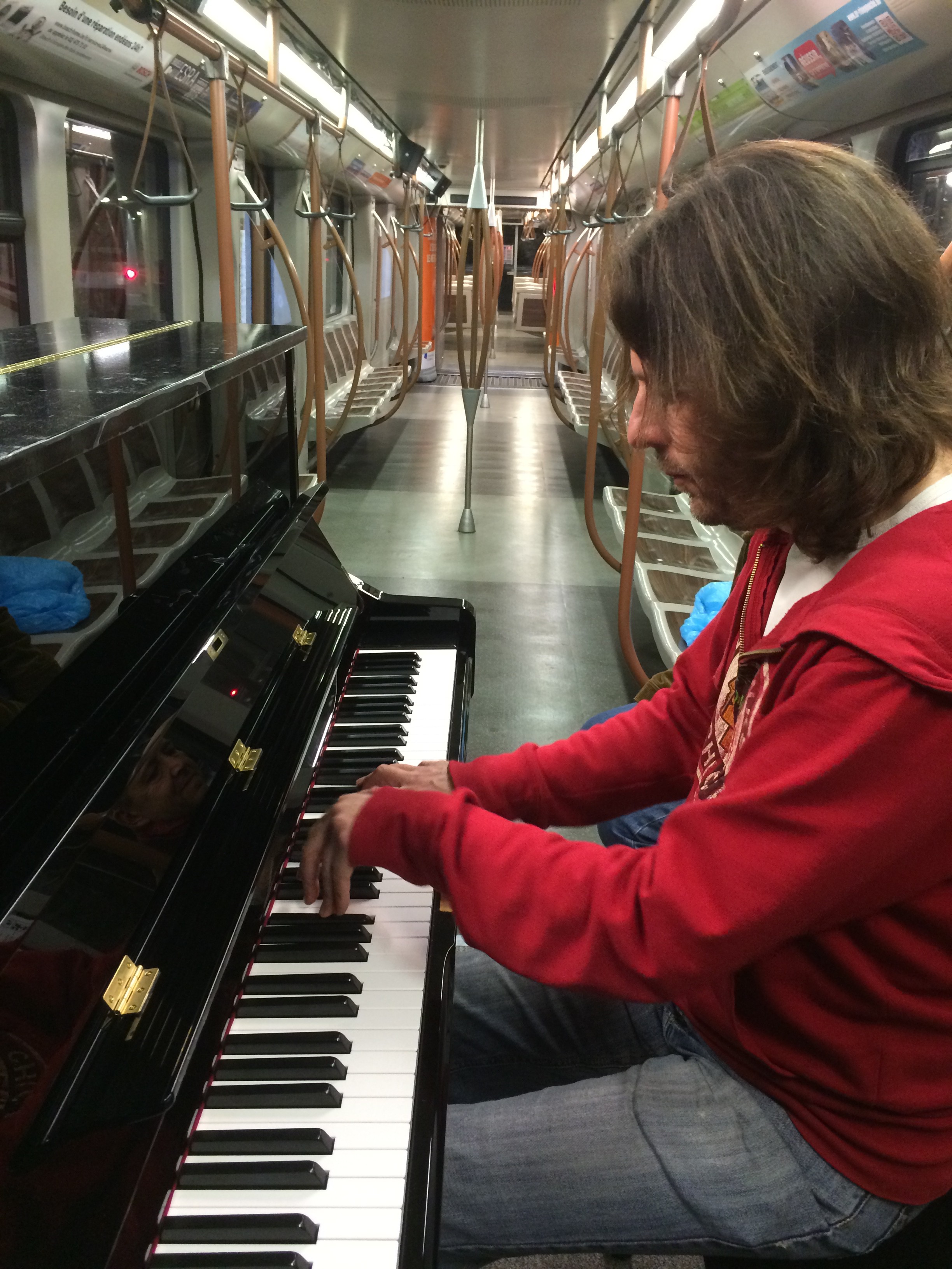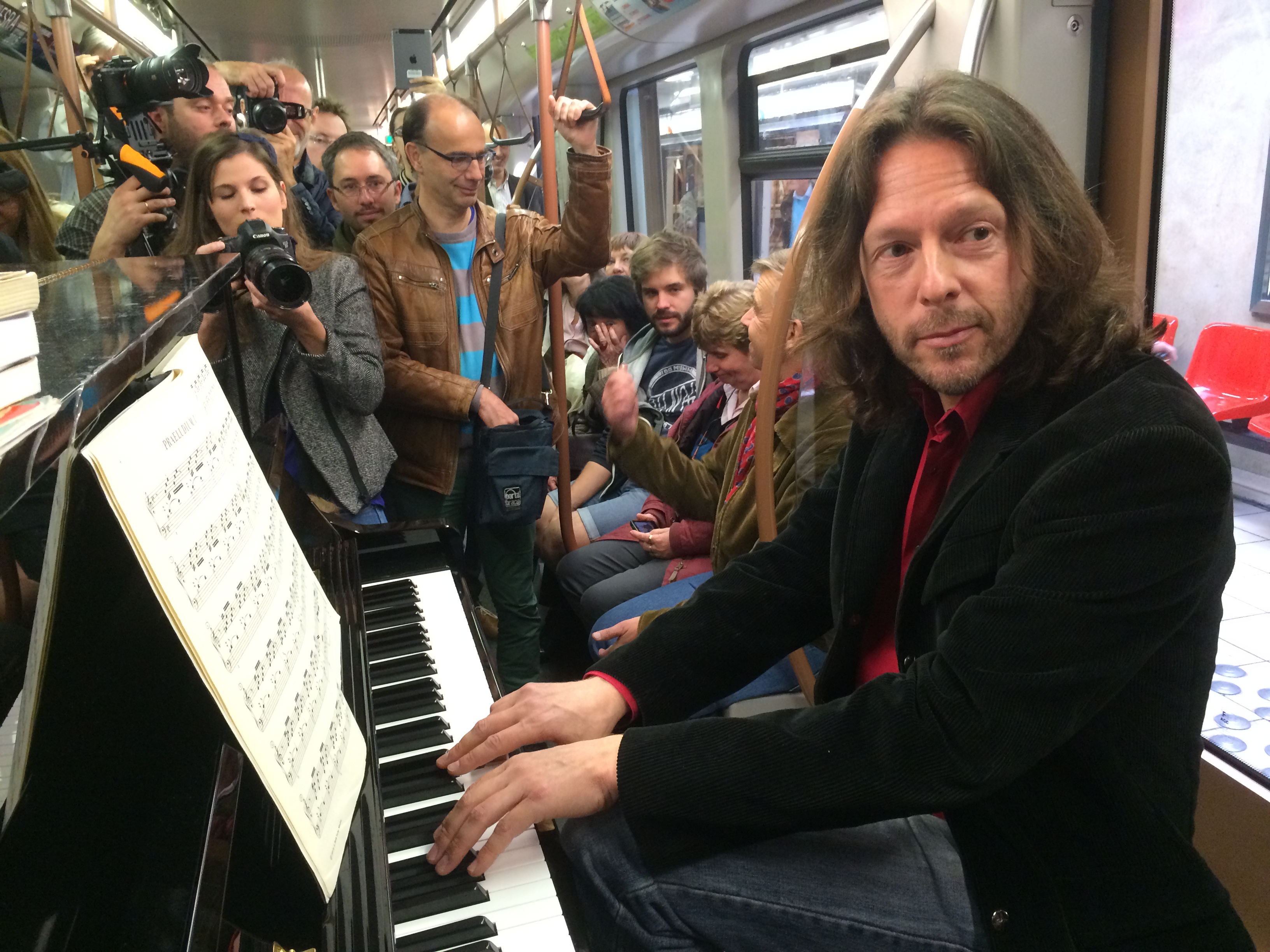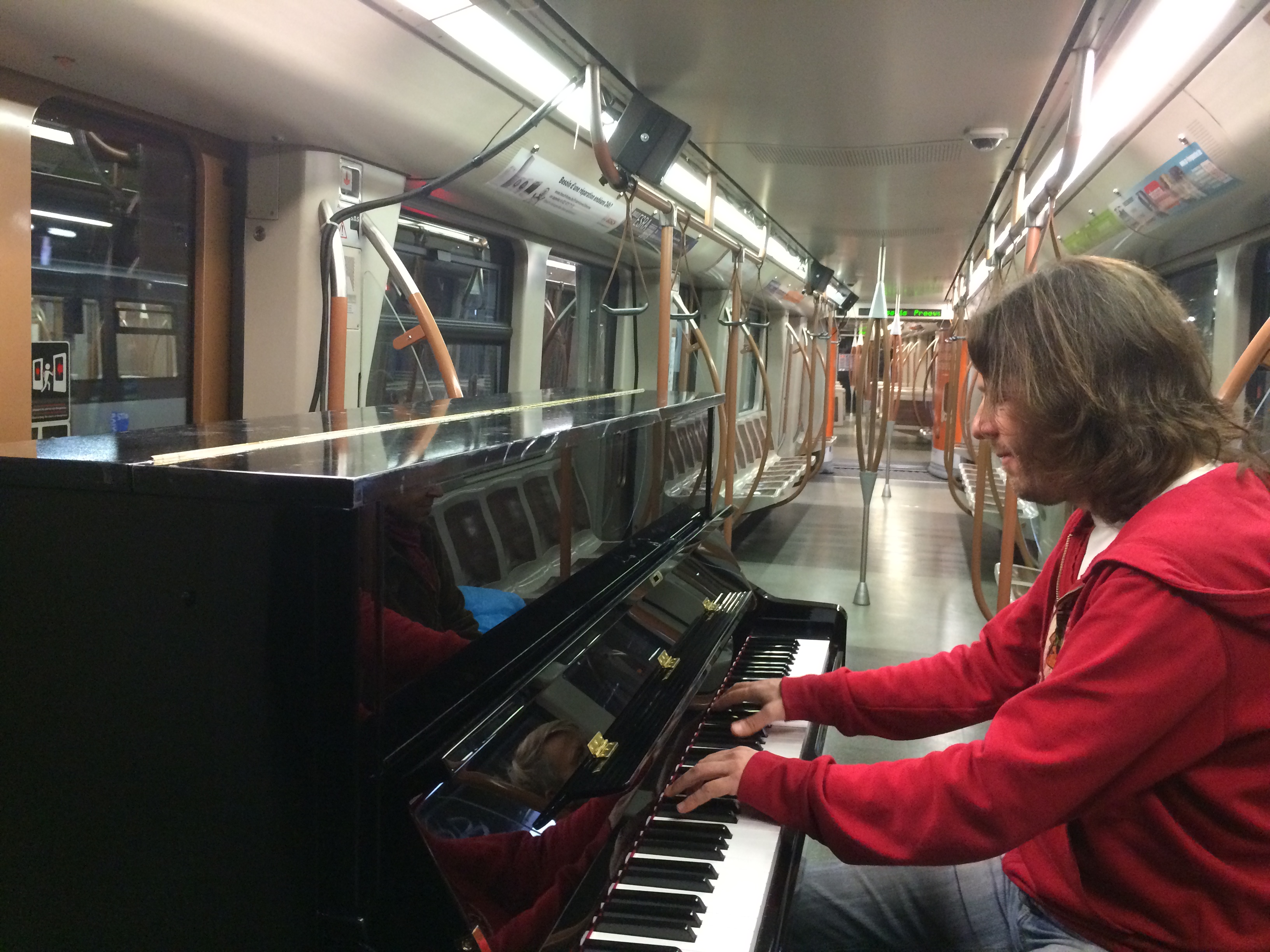 Pour fêter les 60 ans de la STIB, le samedi 12 septembre, le pianiste Frank Braley a donné une ambiance toute particulière au métro de la ligne 1 le temps d’un trajet entre Stockel et Gare de l’Ouest.