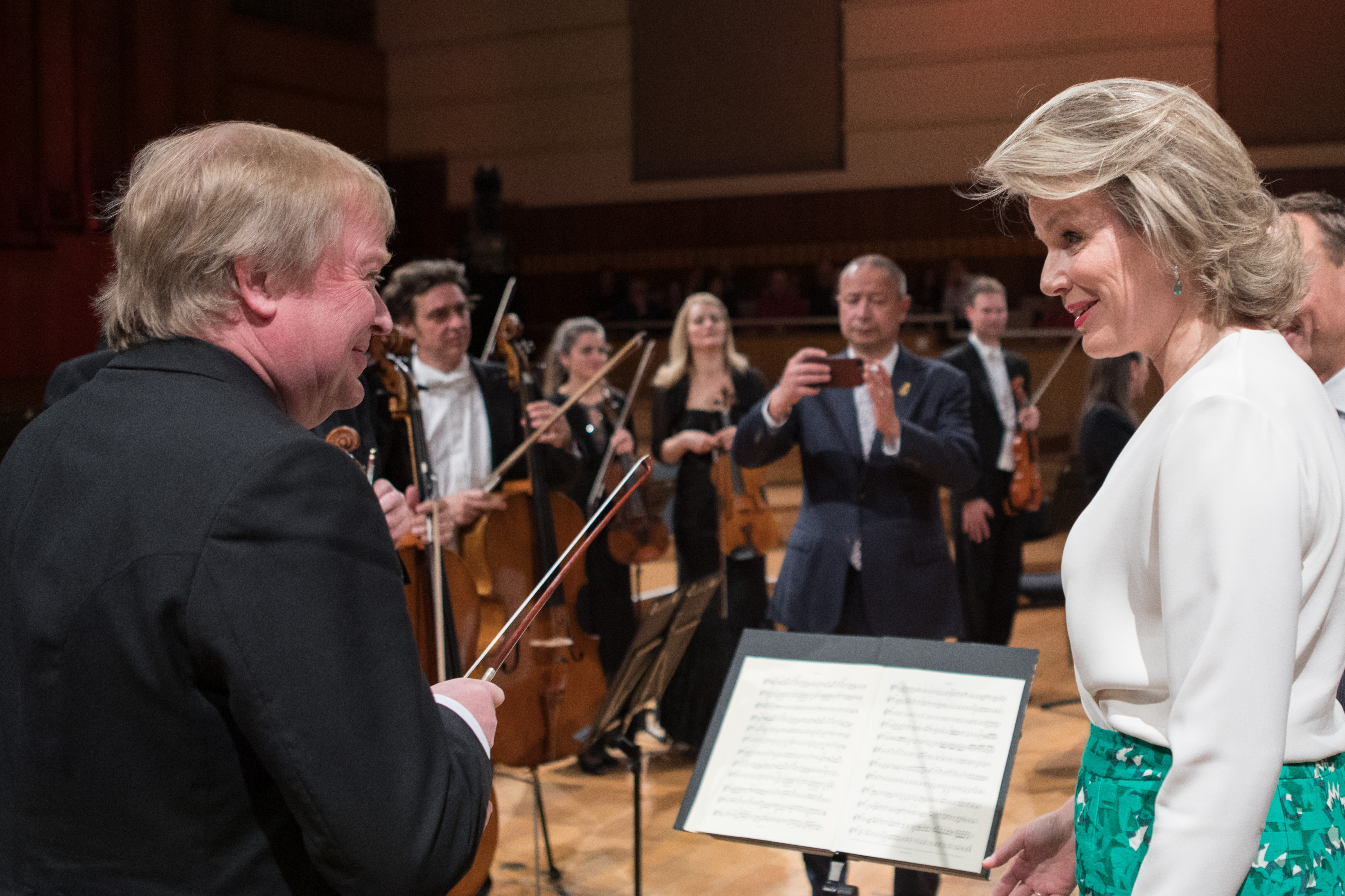 2019-05-11-CMIREB2019-11mai-Reine-et-orchestre-2by-Bruno-Vessiez Publié 23 mai 2019 à 4784 &fois; 3188 dans Concours Reine Elisabeth 2019 – Sa Majesté la Reine Mathilde félicite l’ORCW et Jean-Jacques Kantorow