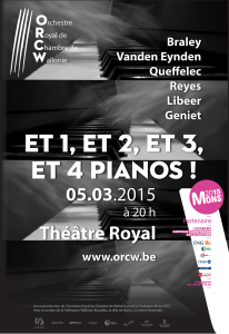 Avec quatre pianos sur scène dans une configuration assez inhabituelle, une équipe de pianistes belgo-française : Jean Claude Vanden Eynden (3e prix du Concours Reine Elisabeth 1964, à l’âge de 16 ans), Anne Queffélec, Eliane Reyes, Julien Libeer (soliste à la Chapelle Musicale Reine Elisabeth), Rémi Geniet (2e prix du Concours Reine Elisabeth 2013) rejoignent Frank Braley, Directeur Musical de l’Orchestre Royal de Chambre de Wallonie, 1er prix et prix du public du Concours Reine Elisabeth 1991, pour un concert prestigieux dédié aux Concerti de Bach.