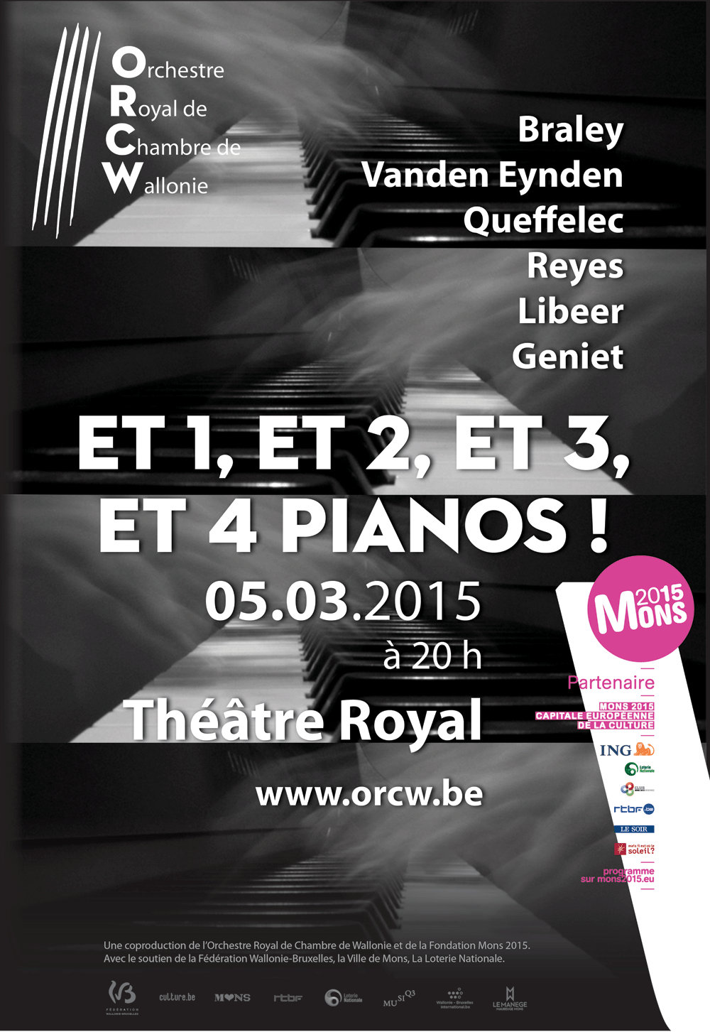 Une coproduction de l’Orchestre Royal de Chambre de Wallonie et de la Fondation Mons 2015. Avec le soutien de la Fédération Wallonie-Bruxelles, la Ville de Mons, La Loterie Nationale.
