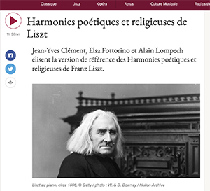 Le 15 novembre 2020, La tribune des critiques de disque de Jérémie Rousseau sur France Musique propose une très belle émission sur les Harmonies poétiques et religieuses de Liszt. » Le roman plein de tact de Jean-Yves Clément ressuscite Chopin.