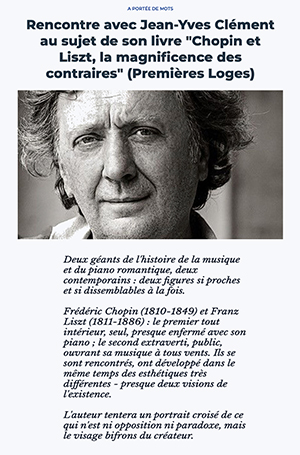 Rencontre avec Jean-Yves Clément au sujet de son livre « Chopin et Liszt, la magnificence des contraires » (Premières Loges)